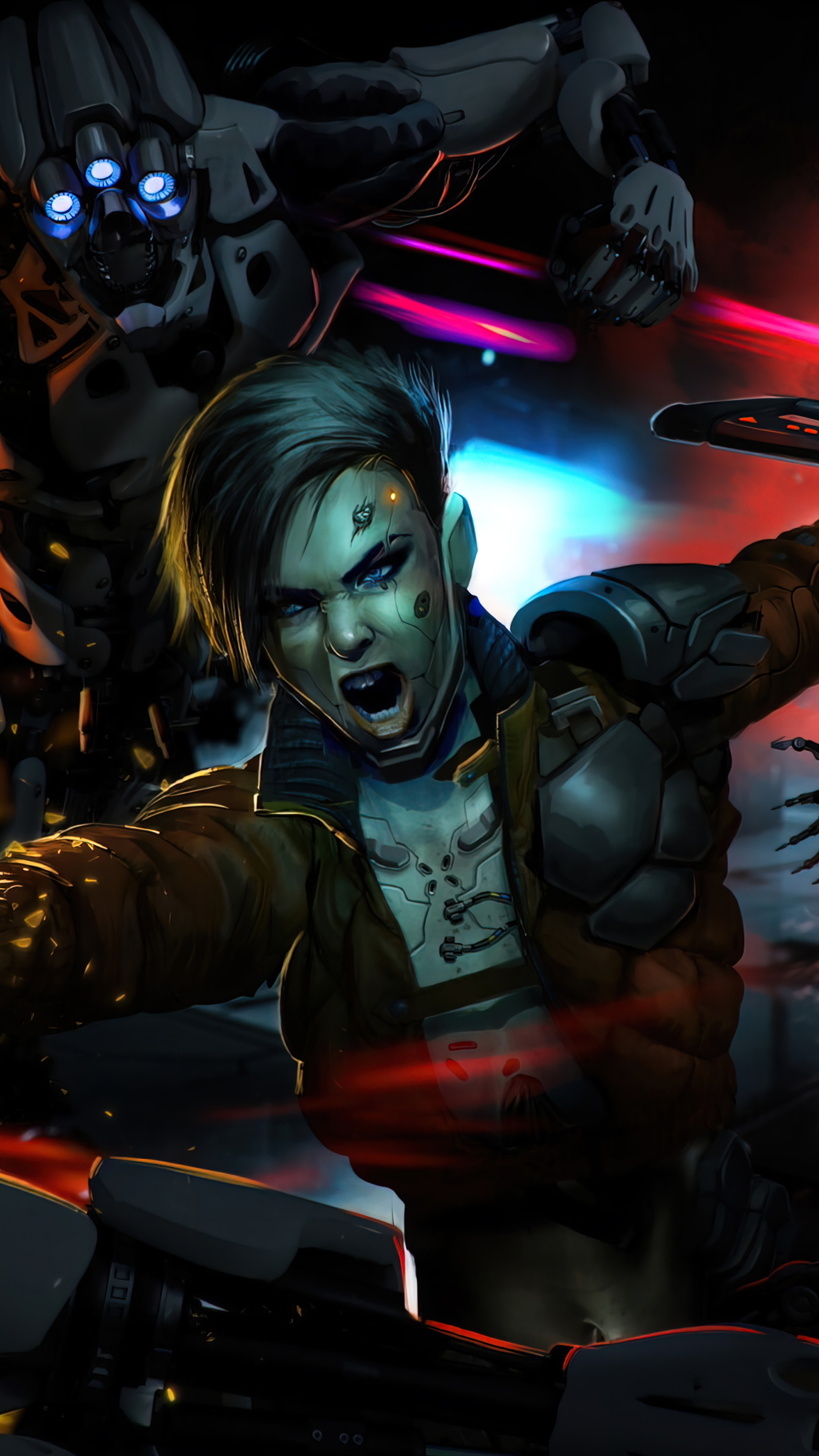 Cyberpunk, Girl, Gun Battle, Sci-Fi, Wallpaper, Futuristic, Female Warrior, Cyberpunk art, Sci-Fi girl, Action, Combat, Neon, Digital Art, Fantasy, Shooting, High-Tech
