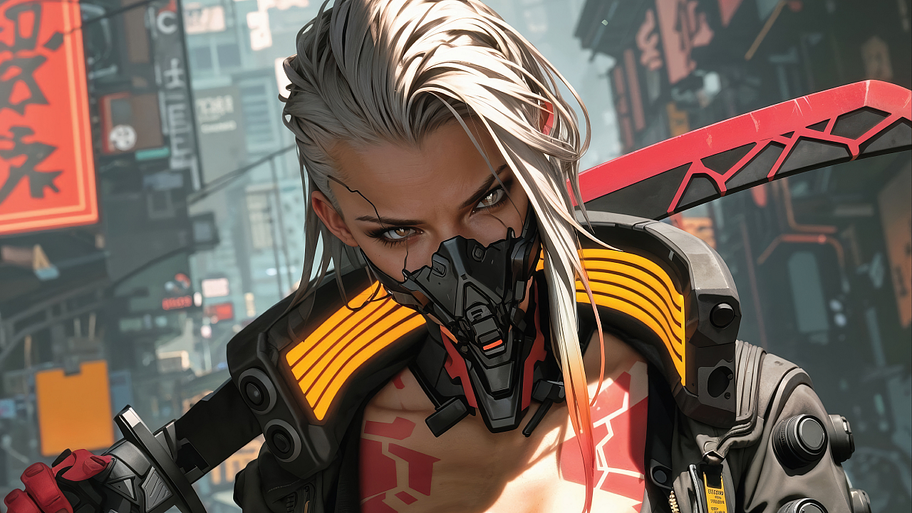 Cyberpunk, Girl, Sword, Sci-fi, Fantasy, Neon, Future, Technology, Blade, Warrior, Cyberpunk Girl, Swordswoman, Digital Art, Sci-fi Fantasy, Futuristic Warrior