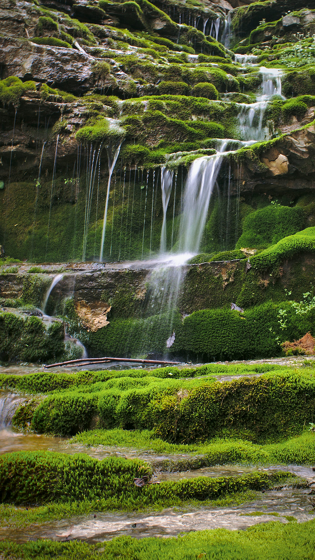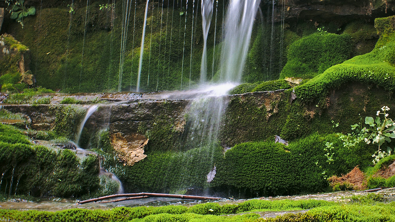 Wallpaper Waterfalls in a Lush Green Field